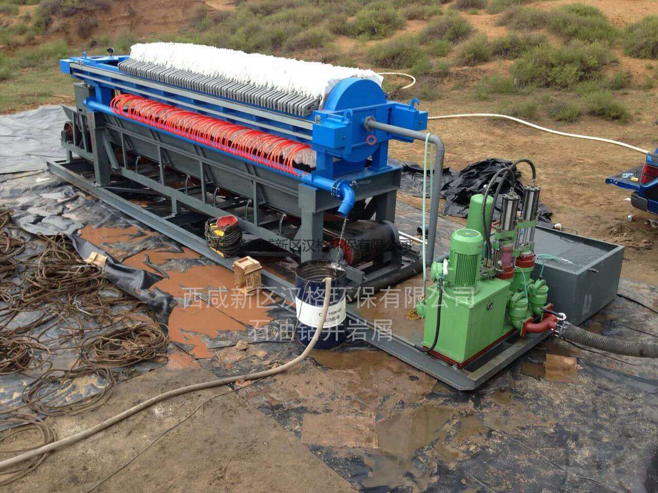 油田鉆井廢泥漿是石油、天然氣勘探開(kāi)發(fā)過(guò)程中產(chǎn)生的主要廢棄物。一般pH呈堿性,顏色高,鹽度高,含有油類、大量有機(jī)物和重金屬離子等有害物質(zhì)。如果不經(jīng)處理直接堆放,會(huì)對(duì)環(huán)境造成嚴(yán)重污染。選擇合適的處理設(shè)備不僅可以避免污染,還可以產(chǎn)生一定的經(jīng)濟(jì)效益。油田鉆井泥漿處理韓格環(huán)保壓濾機(jī)桐鄉(xiāng)牌專用鉆井泥漿壓濾機(jī)。