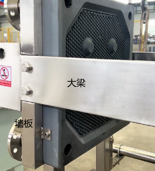 該圖片為壓濾機(jī)的大梁部分,大梁大部分都能看到,使用高質(zhì)量的不銹鋼材質(zhì)蒙皮在大梁部位,工藝復(fù)雜,制作精良。墻板部分也能清晰看到,墻板和大梁街和部分的不銹鋼蒙皮工藝難度很大。