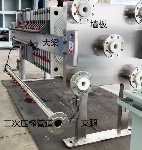 該圖片為大梁部分,以及壓濾機(jī)末端的墻板,均使用不銹鋼蒙皮。